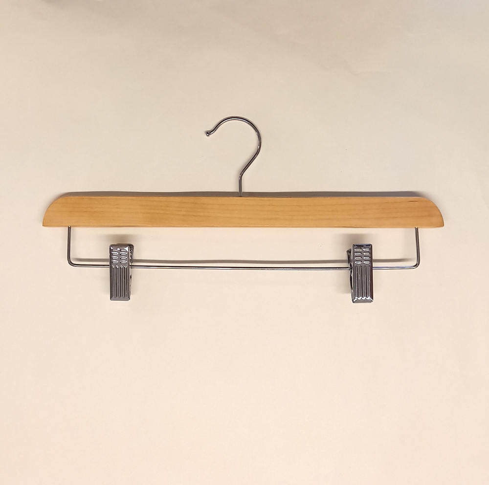 Holz Kleiderbügel für Hosen/Röcke, mit Metallsteg mit 2 Klammern, Länge 34cm, Stärke 12cm