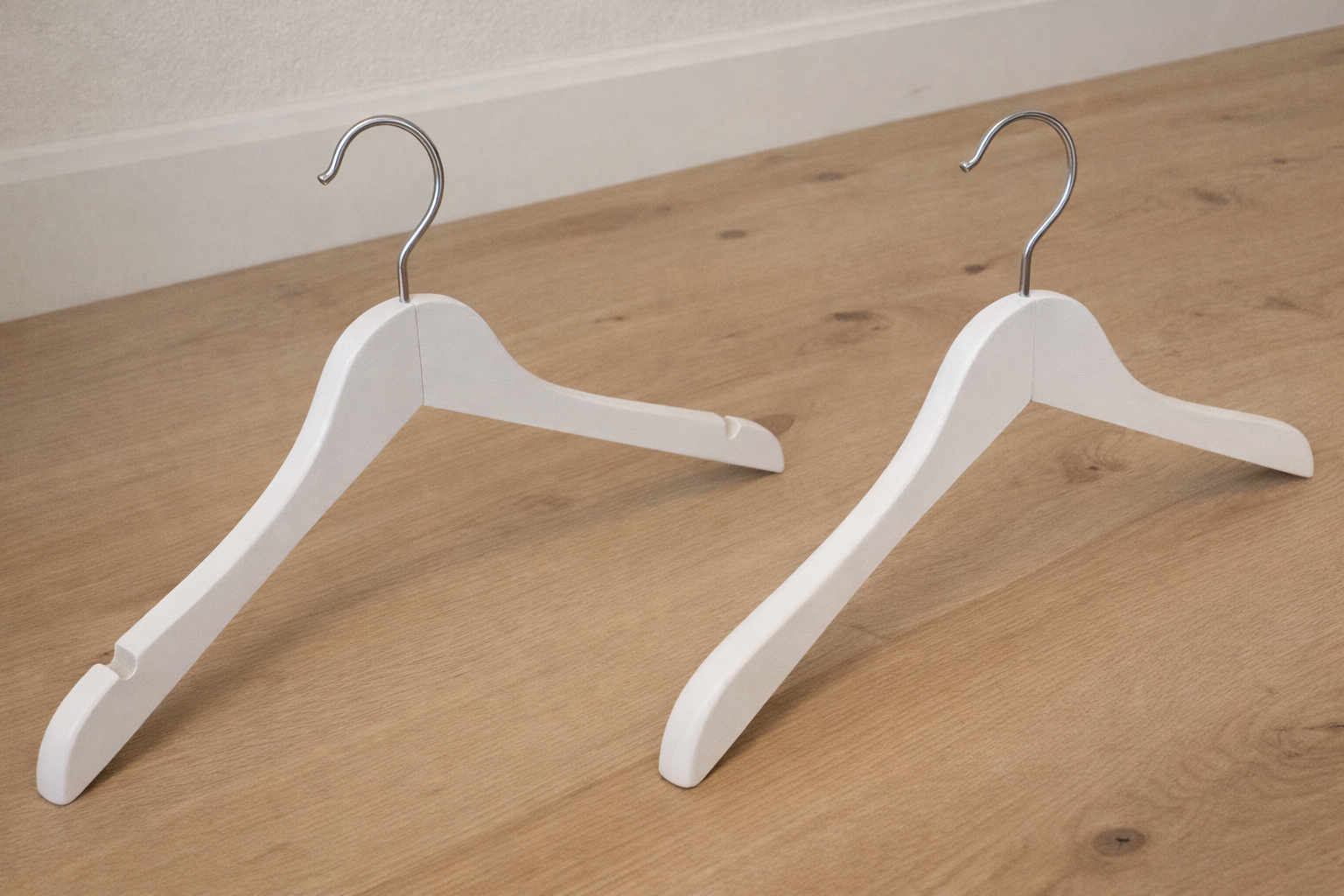 Holz-Kleiderbügel Lotus gewinkelt mit Kerben