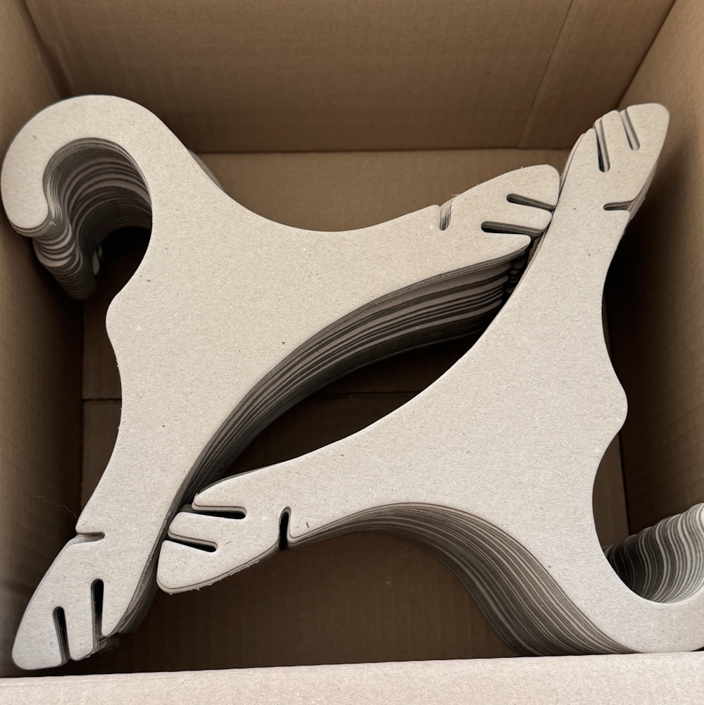 Der Kleiderbügel Ecofriendly in natürlicher grauer Farbe, ist ein hochwertiger, nachhaltiger und umweltfreundlicher Kleiderbügel aus 100 % recyceltem Altpapier, der vollständig recycelbar und biologisch abbaubar ist. Ecofriendly-Kleiderbügel sind robust und für alle Arten von Kleidung geeignet. Dank ihres schlanken Profils und ihrer platzsparenden Eigenschaften maximieren sie die Raumausnutzung in Modegeschäften und Lagerhallen.