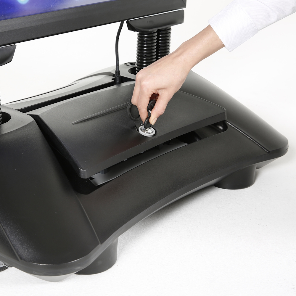 - Hohe Stabilität durch befüllbaren Kunststoff-Fuß mit integrierten Laufrollen für den mobilen Einsatz